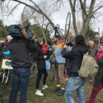 Basın açıklamasından önce yaşam savunucuları bileşenleri “Ayçiçeği aşkına hayır”, “Tarım alanları yok olmasın diye hayır”, “Dereler çağlasın diye hayır”, “mega projelere hayır” dövizleriyle parkı süsledi. Ayrıca ağaçları çaputlayan yaşam savunucuları, çaputlara neden hayır dediklerini de yazdılar.